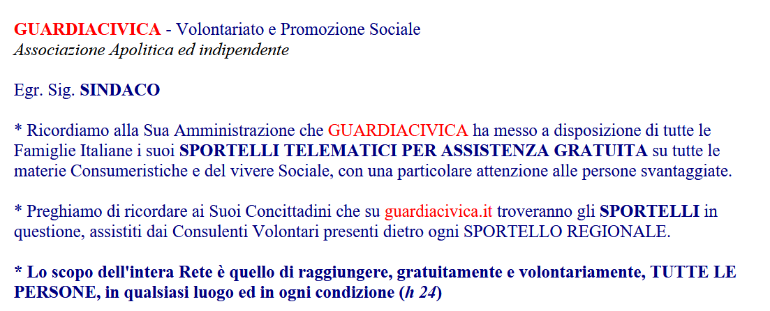23 gennaio 2026 - Sportelli telematici per Assistenza Gratuita promossi da GUARDIA CIVICA Volontariato e Promozione Sociale - Associazione Apolitica ed indipendente