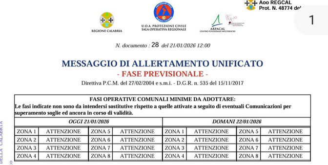 21 gennaio 2026 Aggiornamento bollettino meteo