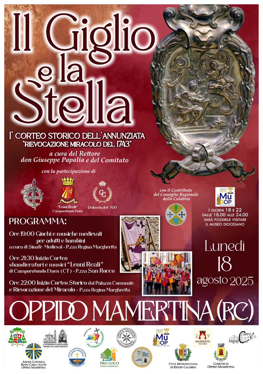 14 agosto 2025 - Il Giglio e la Stella: lunedì 18 agosto a partire dalle ore 19.00 - rievocazione storica del miracolo del 1743.