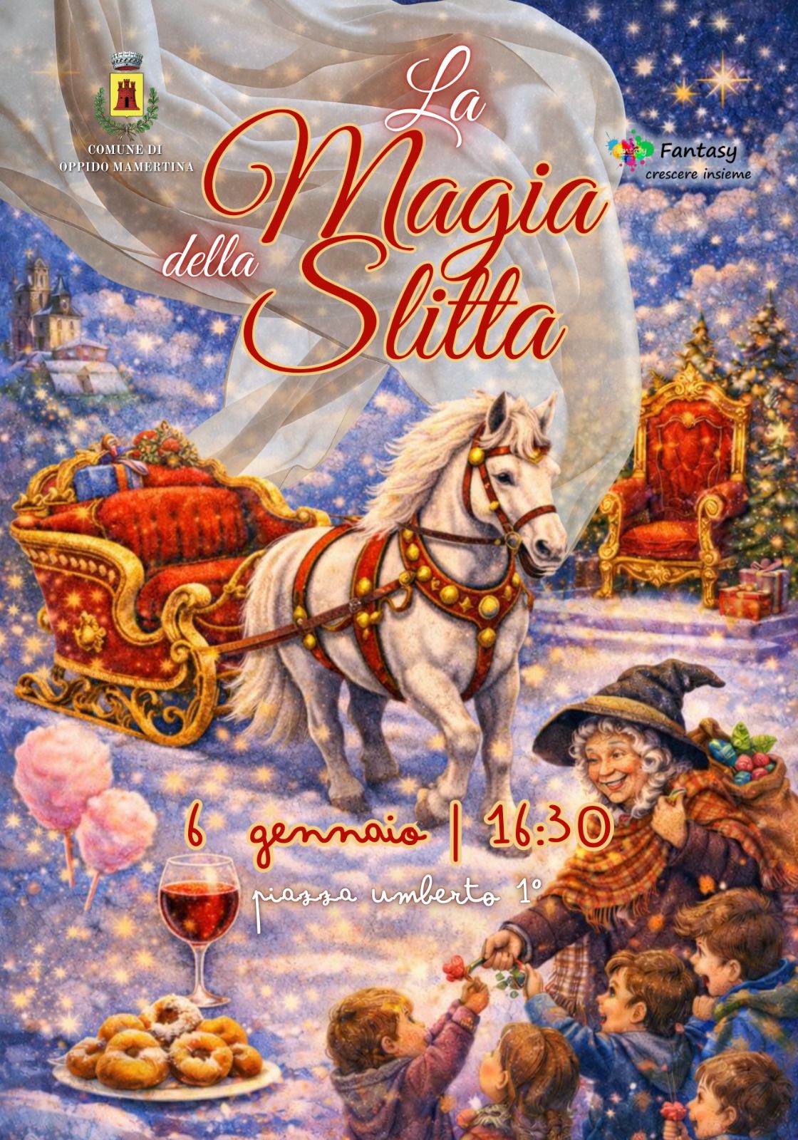 A chiusura delle manifestazioni natalizie, per tutti i bambini in Piazza Umberto I si è tenuto l'evento "La Magia dells Slitta" con l'arrivo dellaa Befana in Piazza, a cura dell'Associazione Fantasy Crescere Insieme con dolci, caramelle e musica.